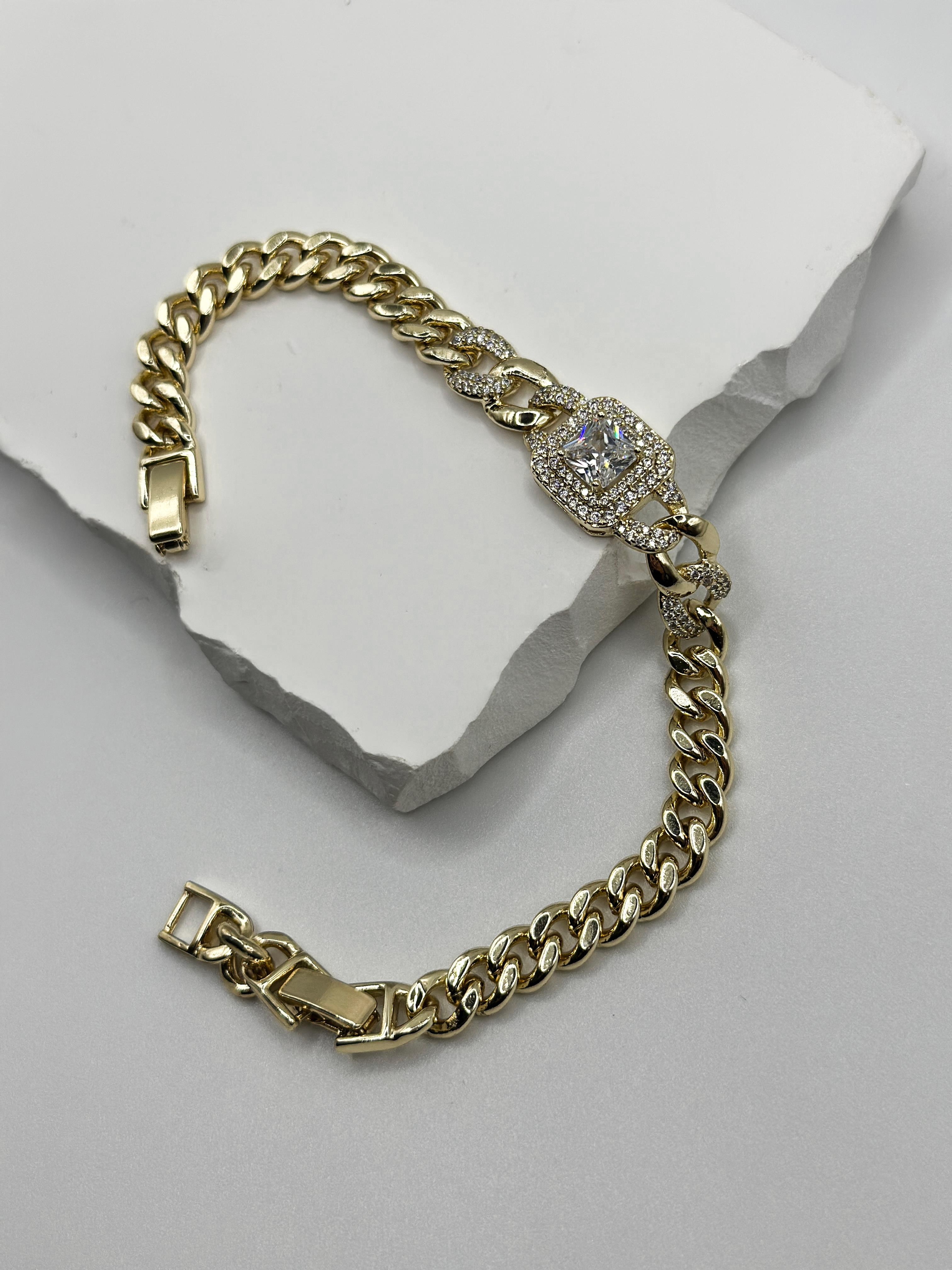 KLASİK KARE TAŞ ÇELİK GOLD BİLEKLİK UZATMALI